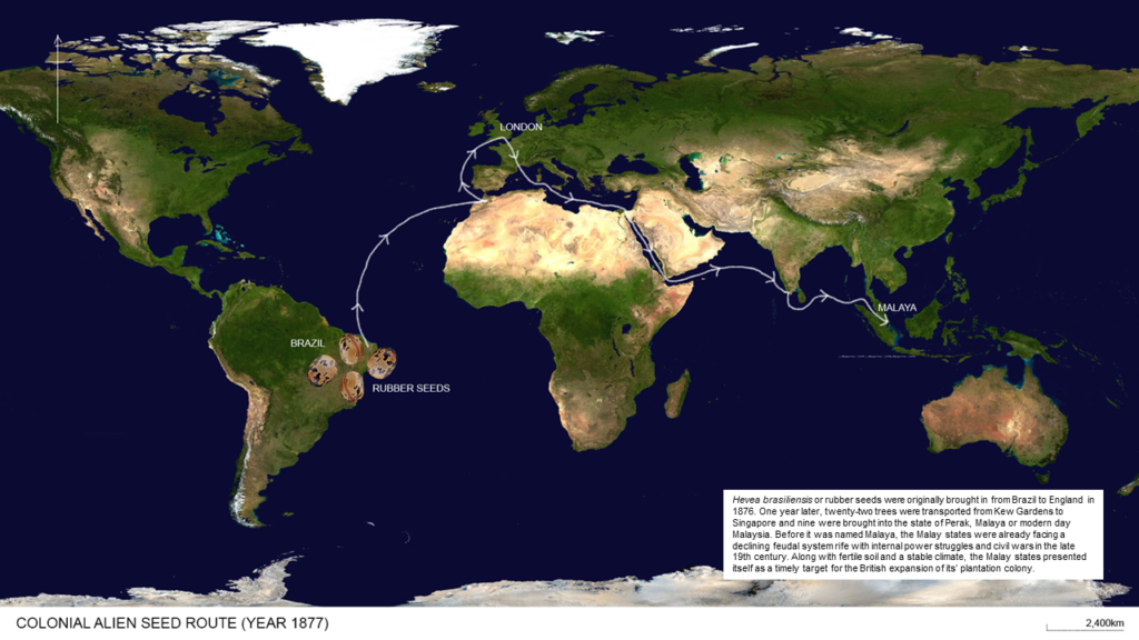 The introduction of rubber into the Malay states had a twofold consequence. Firstly, the mass import of foreign labor from India and China. Secondly, communal politics which plagues Malaysia until today. It is important to note that pre-colonial Malaya were Malay kingdoms which embraced Hinduism and Buddhism. Given the Malay states’ strategic location, trade has flourished at least 1700 years ago. In the 1400s, there are also records of official state visits between China and the state of Malacca. The Peranakan Chinese of Malacca and Penang blurred the lines between Chinese and Malay; and Muslim Indian-Malay marriages produced the Jawi Peranakan group. Only during the 19th century, the West brought a narrower definition of race and hierarchical classifications of peoples to quantify and justify their imperial conquests. Since then, the rigid definition of race has further hardened with time as contemporary Malaysia’s elite Malay political parties continues to use it to their advantage to preserve their status quo. It is not a coincidence that FELDA or the Federal Land Development Authority was one of the British legacies in Malaysia. Lord Howick revealed on the Guardian in 1981 that it was the main strategy to curb Chinese communism and “buy off” the rural Malays. Malay politicians further accelerated the FELDA apparatus to create an emerging rural middle class through the New Economic Policy (NEP) implemented after the racial riots of 1969. Over 480,000 hectares of state land and forest reserves had been cleared for rubber or palm oil plantation not including the construction of the settlement itself.